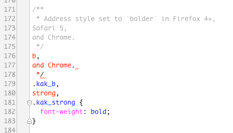Естественно «оптимизатор» не знал, что такое normalize.css, поэтому свои правила он вставлял и выше и ниже и в сам normalize, который был импортирован при компиляции. При этом не обошлось без ошибок (подчеркнуты красным). Удивительно, но все браузеры переварили без проблем. 2015-05-15 13-13-12 template.css - mtk-met.ru - [ Applications MAMP htdocs mtk-met.ru]