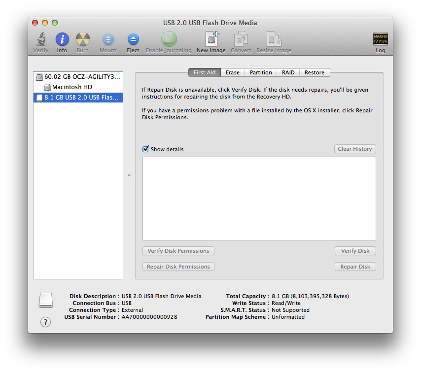ВАЖНОЕ ЗАМЕЧАНИЕ: Пример кода выше работает в том случае, если ваш жесткий диск подключен к SATA порту 0. Если у вас используется другой порт, то вы можете узнать его из Дисковой Утилиты.
