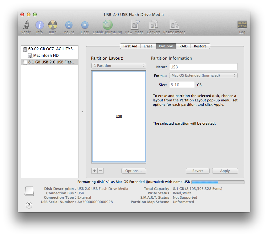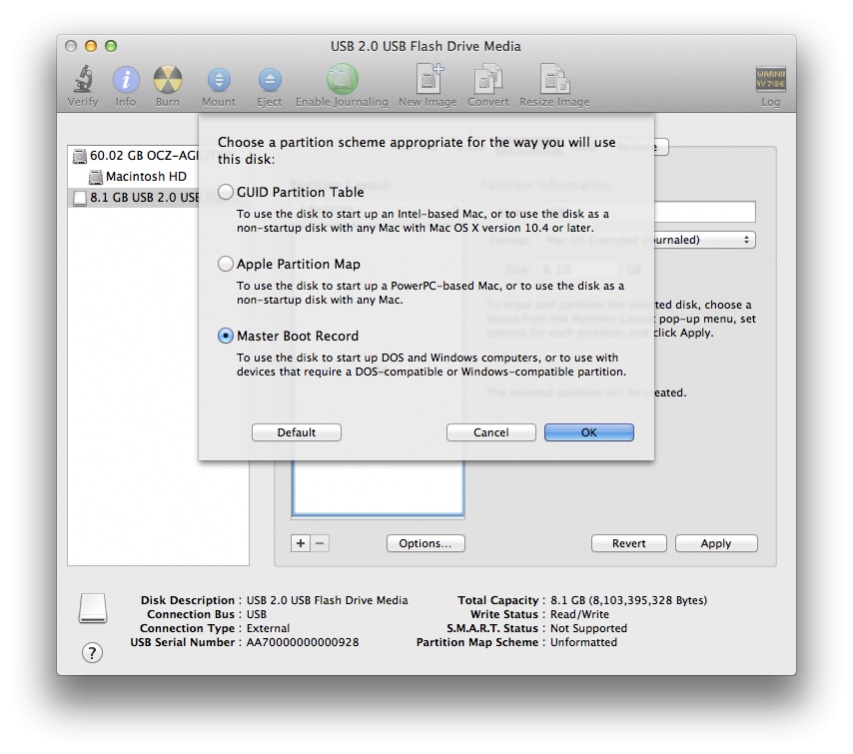 9) В поле Format (Формат): Выберите Mac OS Extended (Journaled — журнальный)